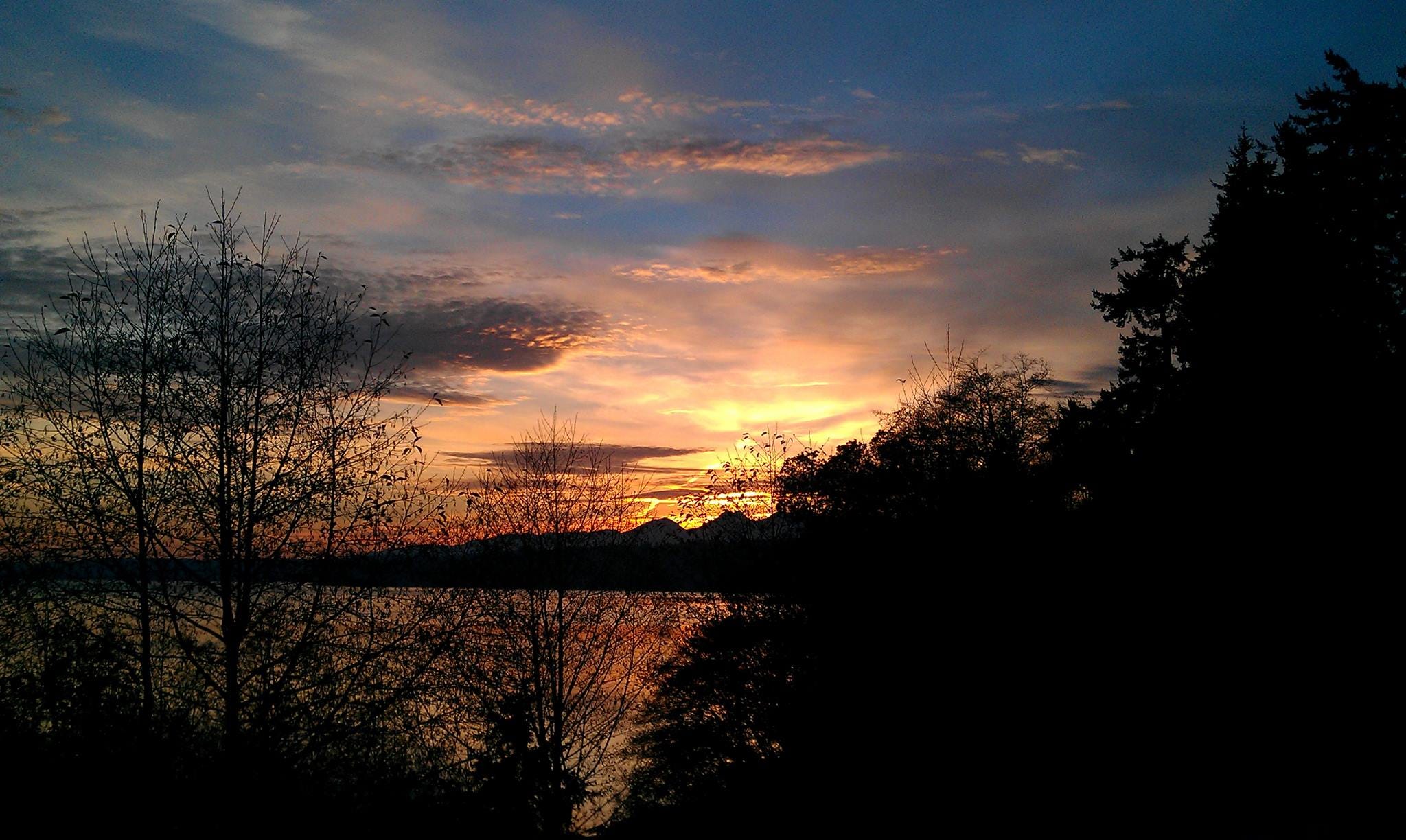 Also had glorious weather. Entering town we saw wispy mist hanging in the valley, suspended over the frosted fields in the early sunrise. Stunning sunset over the Olympics as we crossed the Hood Canal Bridge coming home.